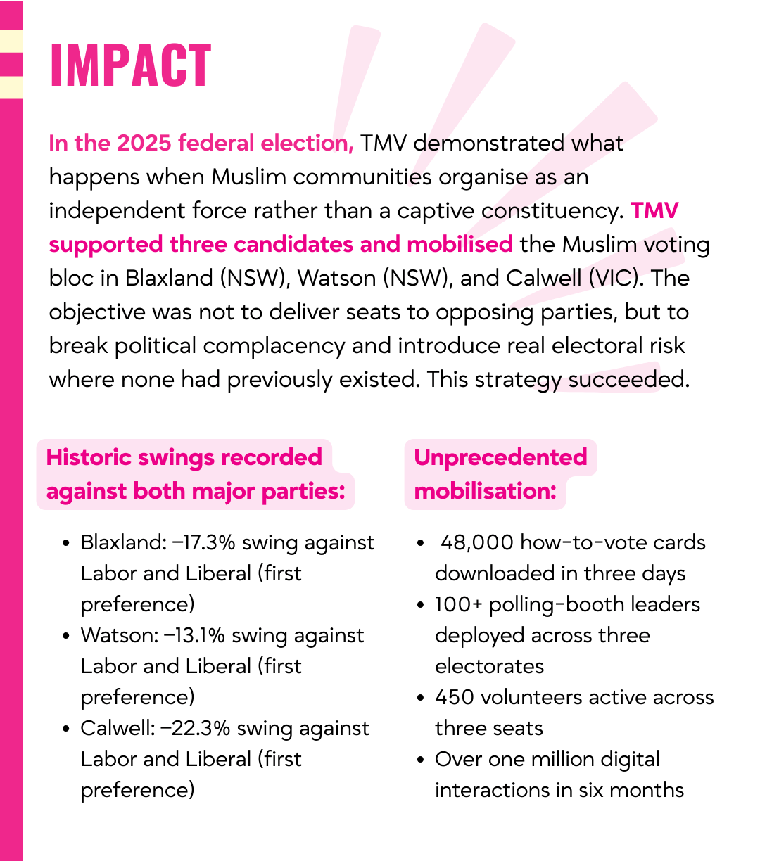 For the last 2.5 years, TMV has been writing and providing analysis in the political, advocacy and community space. The last federal election saw significant successes, the likes of which have not happened previously. Three federal seats were heavily impacted. The numbers turned against the sitting member, opposing the national trend and giving hope for change.